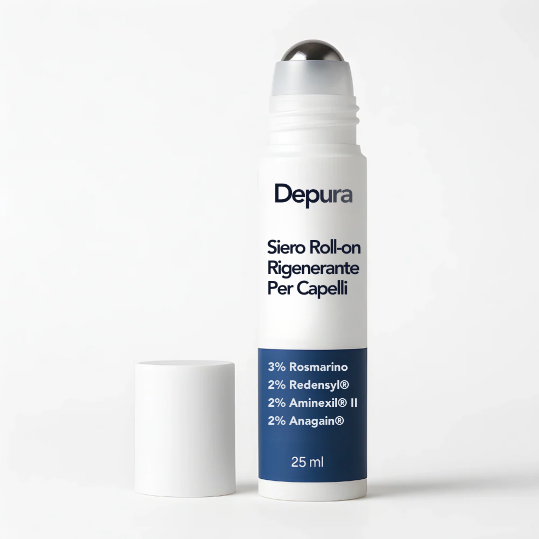 Depura utilizza 4 principi attivi studiati — Redensyl®, Aminexil™, Rosmarino e Anagain™ — dosati con precisione per agire sul diradamento fin dalla radice.